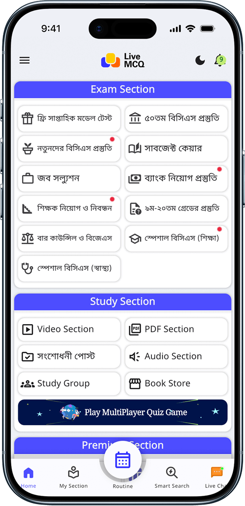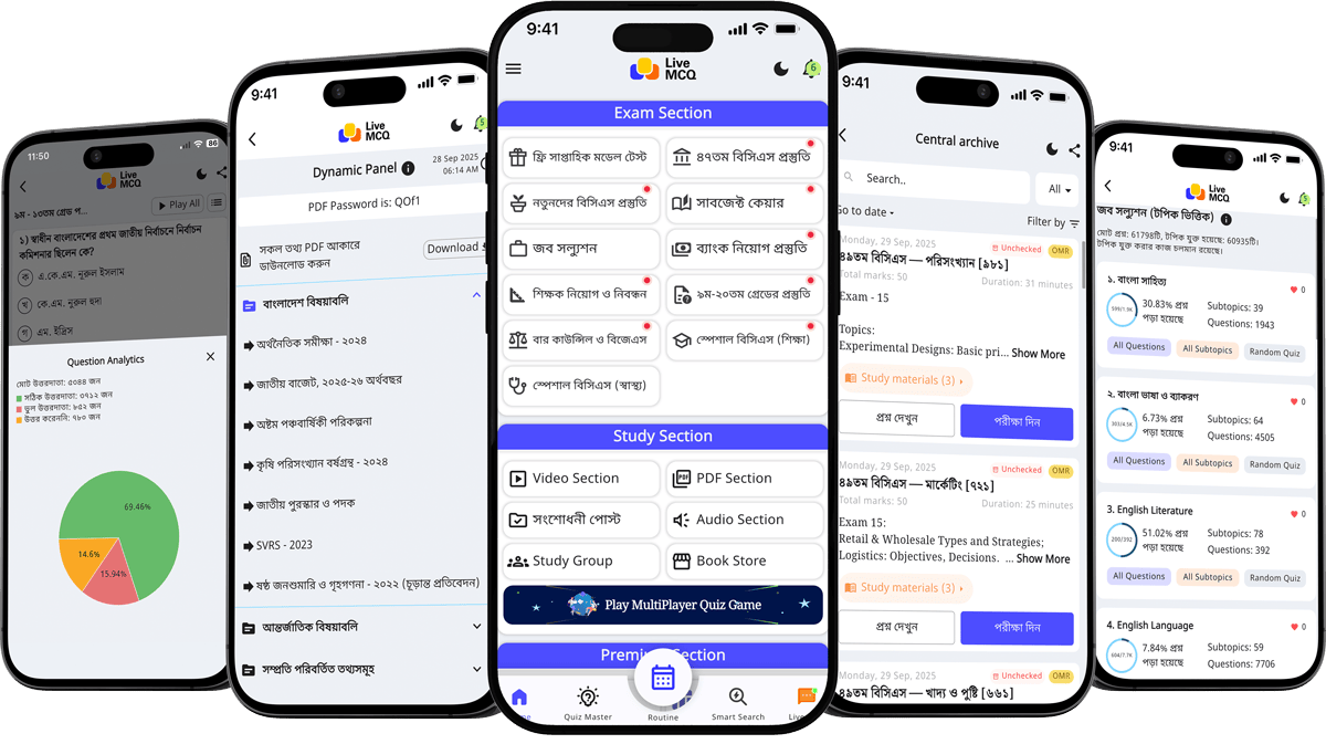 আপনার সরকারি চাকুরী প্রস্তুতির যাত্রা আরেকটু সহজ করতে Live MCQ™ টিম সর্বত্র আপনার পাশে আছে।