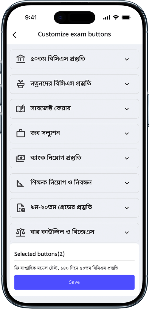বিসিএস, ব্যাংক, ATEO, প্রাথমিক শিক্ষক নিয়োগ, শিক্ষক নিবন্ধন (NTRCA), ৯ম-২০তম গ্রেডের চাকরি, বার কাউন্সিল, বিজেএস পরীক্ষাসহ প্রায় সকল সরকারি-বেসরকারি চাকরির পূর্ণাঙ্গ প্রস্তুতি নিন Live MCQ™ অ্যাপে।
