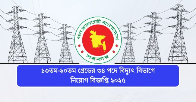 ১৩তম-২০তম গ্রেডের ৩৪ পদে বিদ্যুৎ বিভাগে নিয়োগ বিজ্ঞপ্তি