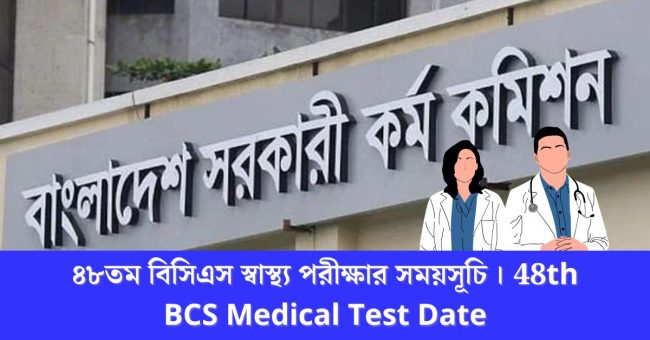 ৪৮তম বিসিএস স্বাস্থ্য পরীক্ষার সময়সূচি । 48th BCS Medical Test Date