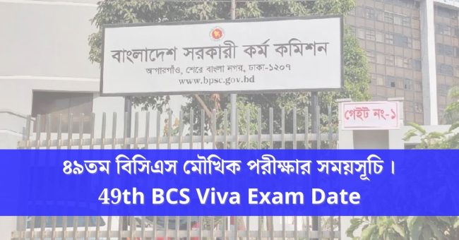 ৪৯তম বিসিএস মৌখিক পরীক্ষার সময়সূচি । 49th BCS Viva Exam Date