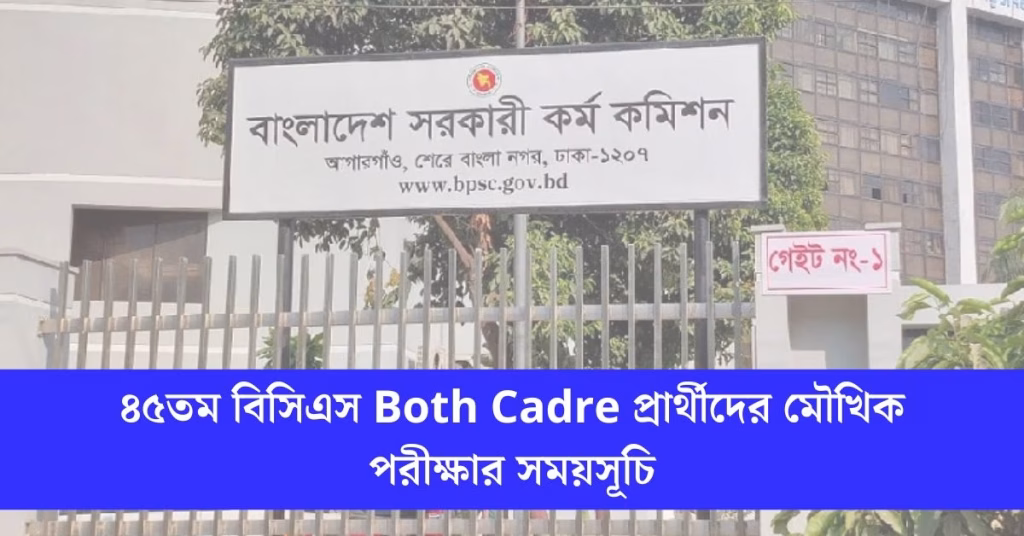 ৪৫তম বিসিএস Both Cadre প্রার্থীদের মৌখিক পরীক্ষার সময়সূচি