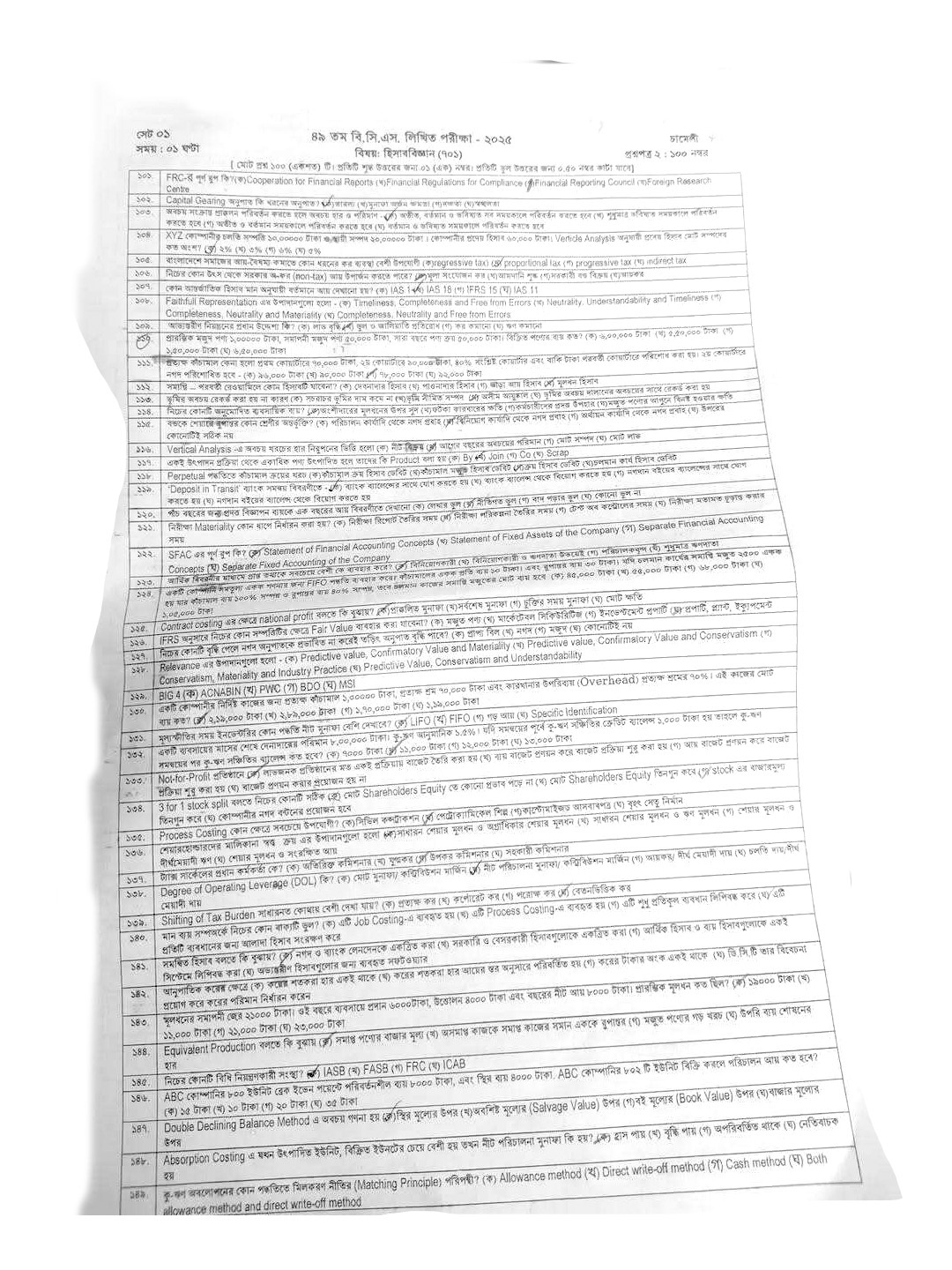 ৪৯তম বিসিএস লিখিত হিসাববিজ্ঞান পরীক্ষার প্রশ্ন । 49th Special BCS Accounting Exam Question