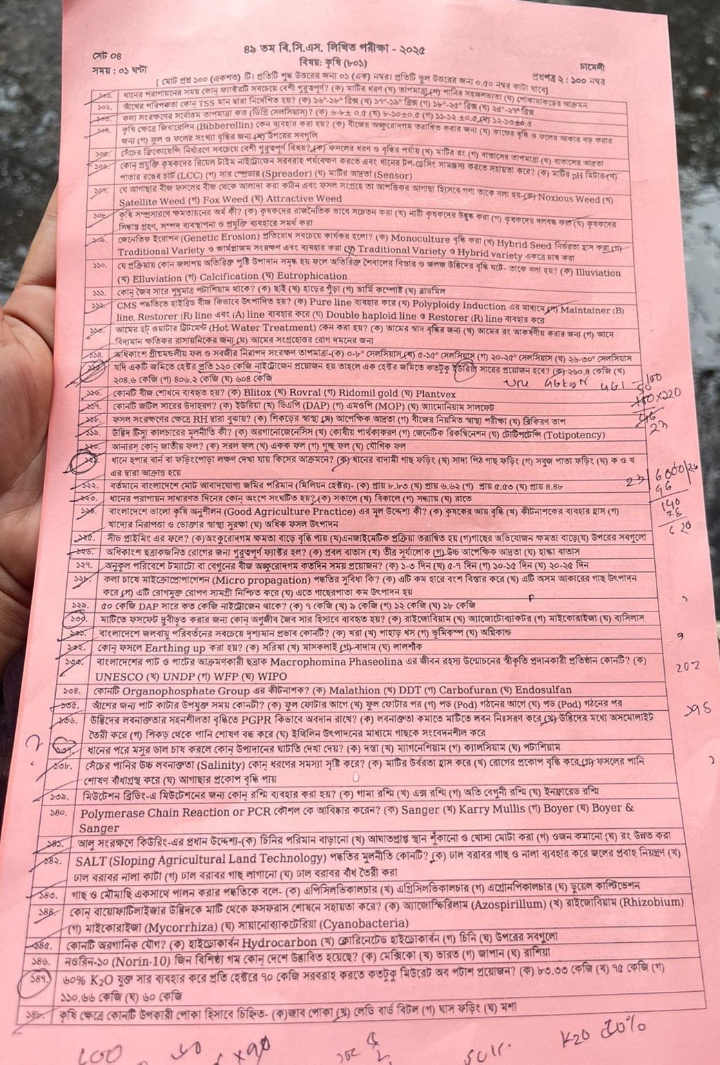 ৪৯তম বিসিএস লিখিত কৃষি পরীক্ষার প্রশ্ন । 49th Special BCS Agriculture Exam Question