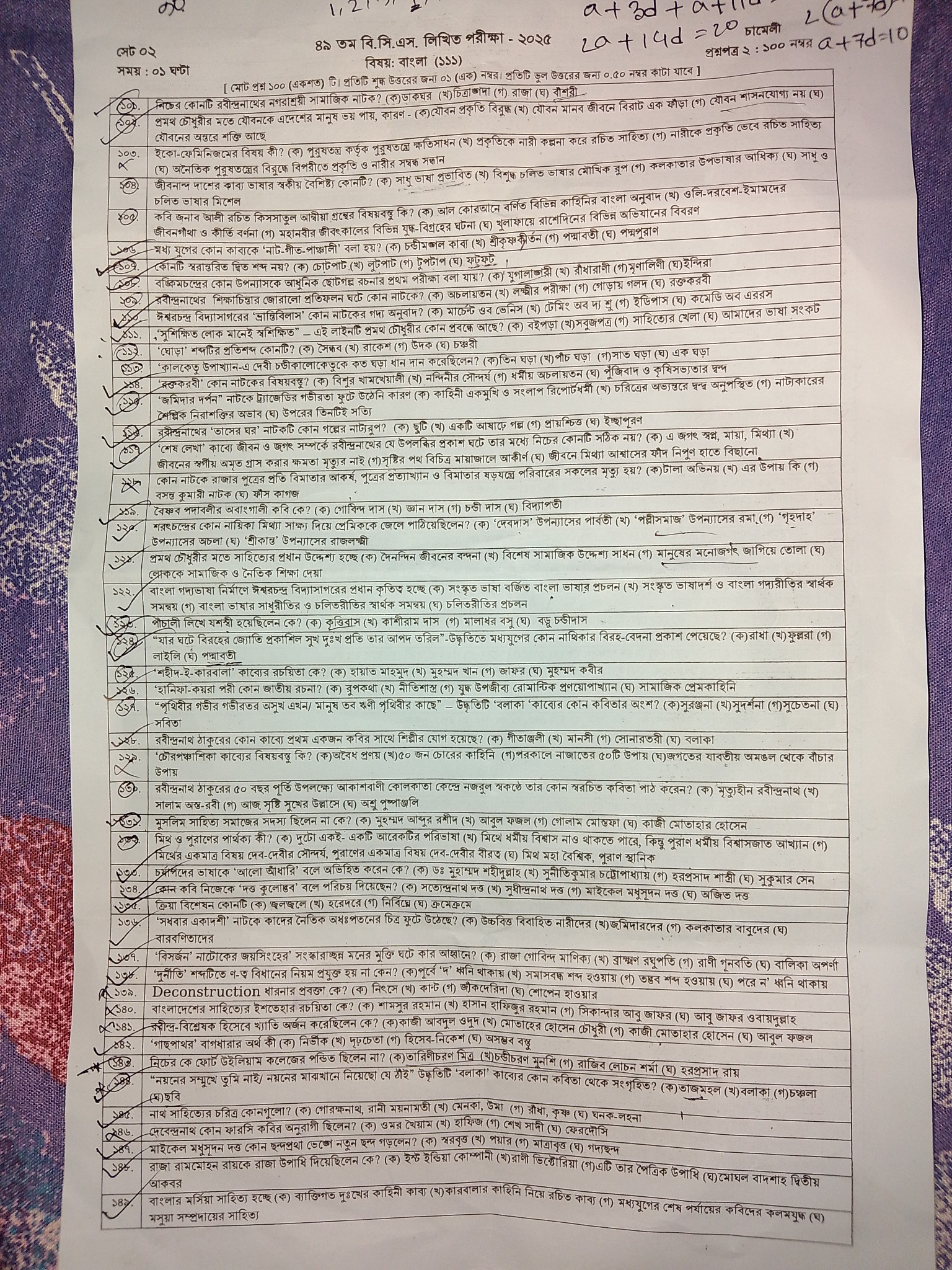 ৪৯তম বিসিএস পরীক্ষার প্রশ্ন । 49th BCS Exam Question