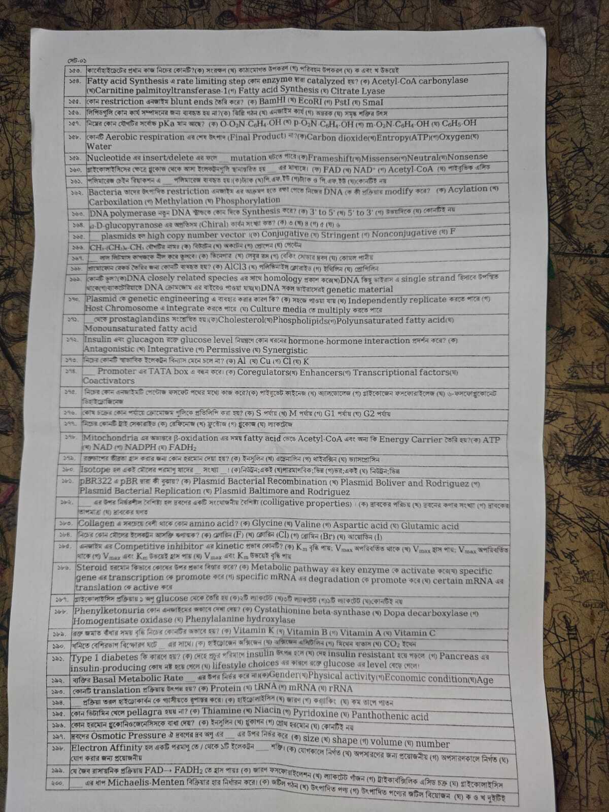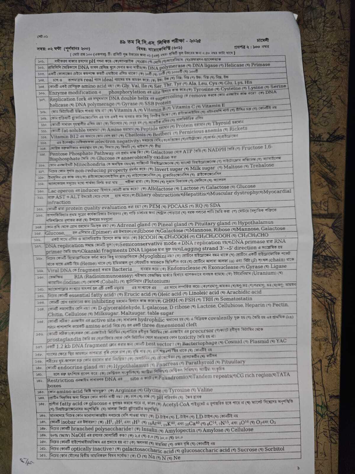 ৪৯তম বিসিএস লিখিত প্রাণ রসায়ন পরীক্ষার প্রশ্ন । 49th Special BCS Bio Chemistry Exam Question