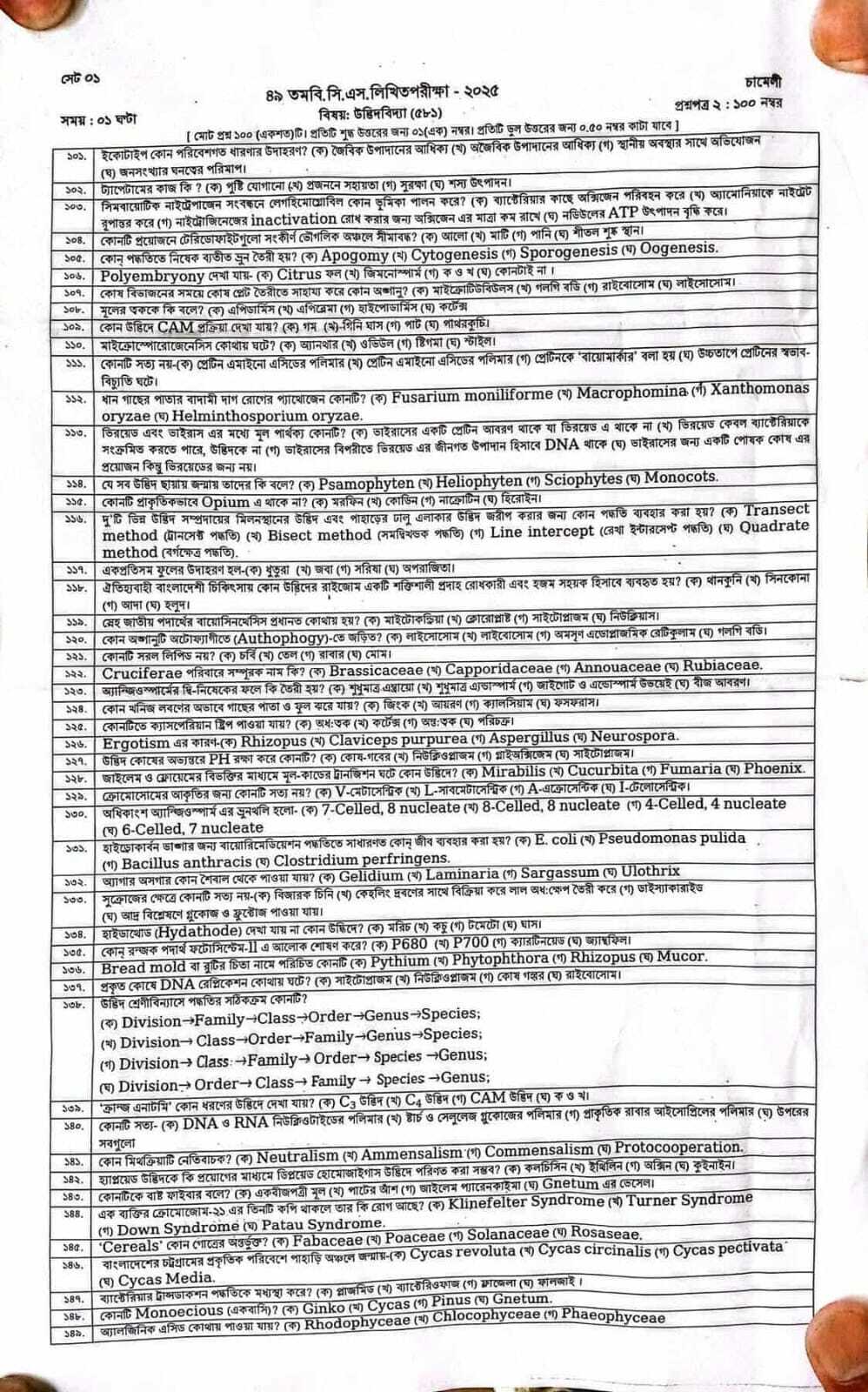 ৪৯তম বিসিএস লিখিত উদ্ভিদবিদ্যা পরীক্ষার প্রশ্ন । 49th Special BCS Botany Exam Question