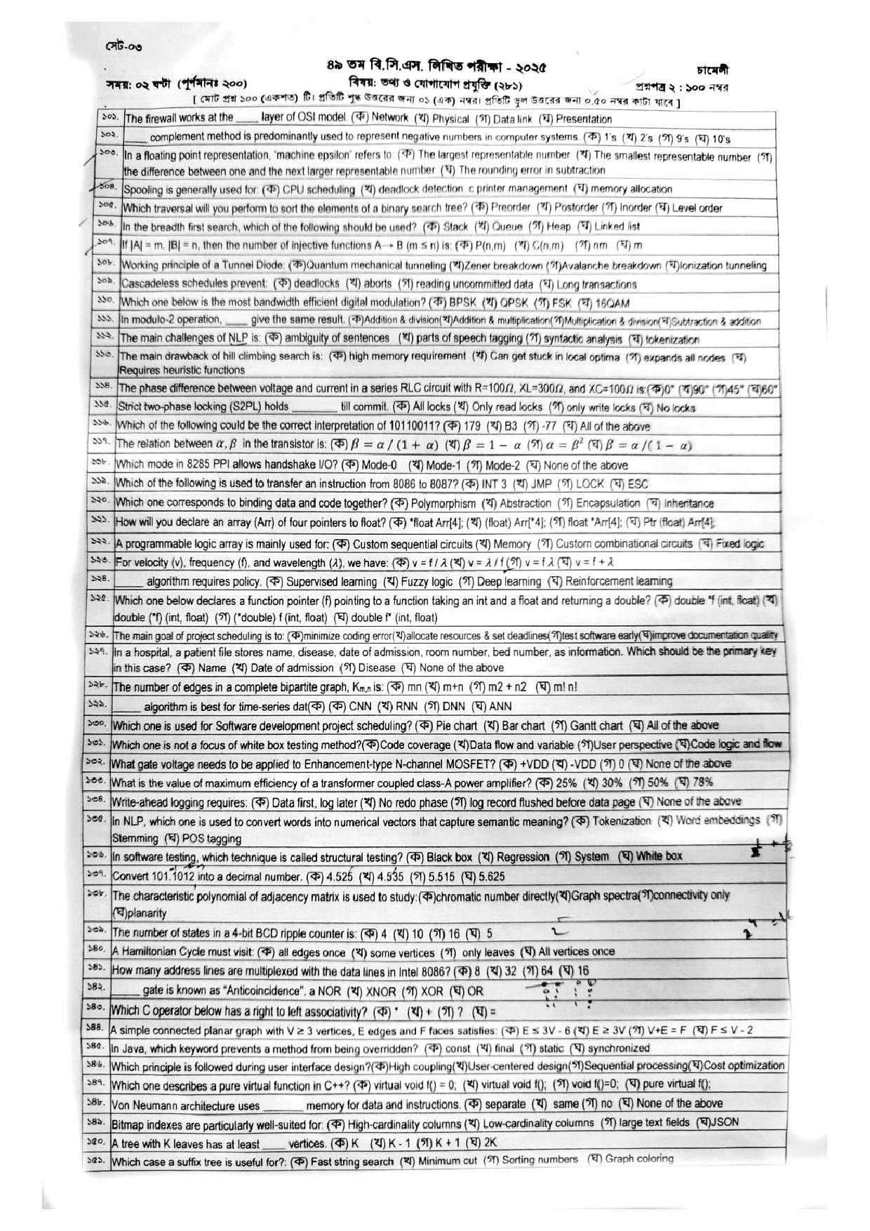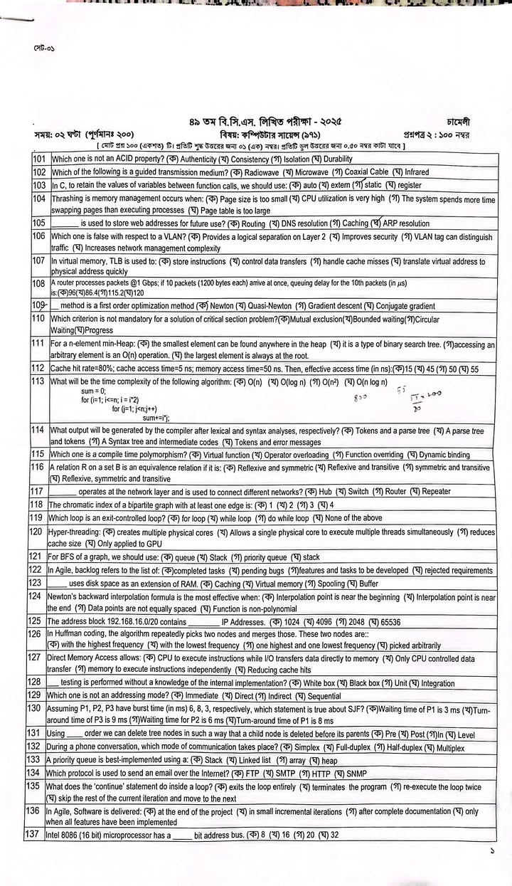 ৪৯তম বিসিএস লিখিত কম্পিউটার সায়েন্স পরীক্ষার প্রশ্ন । 49th Special BCS Computer Science Exam Question