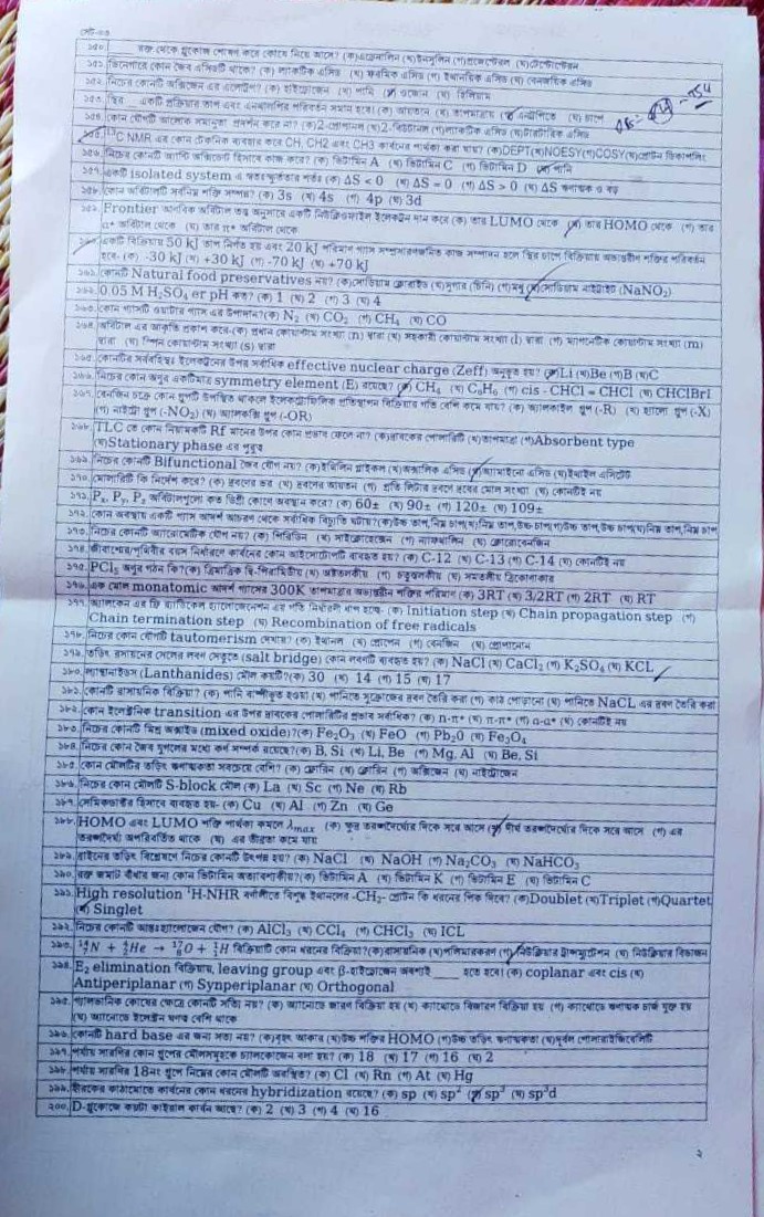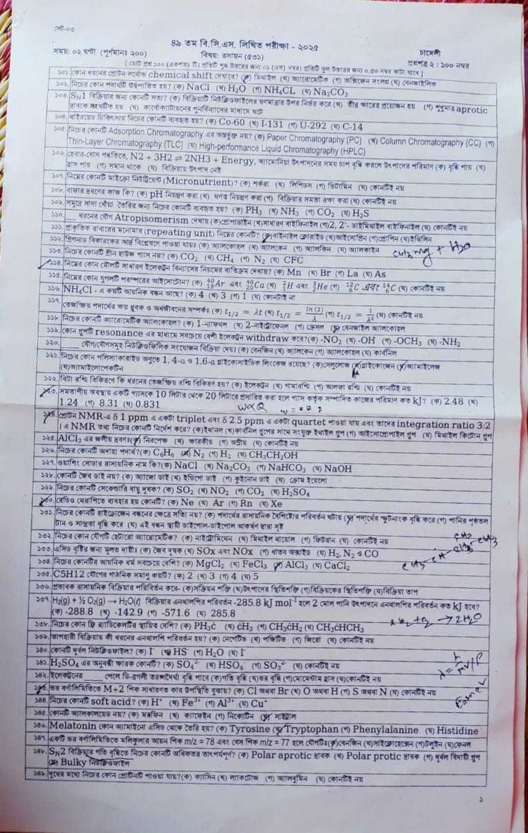 ৪৯তম বিসিএস লিখিত রসায়ন পরীক্ষার প্রশ্ন । 49th Special BCS Chemistry Exam Question