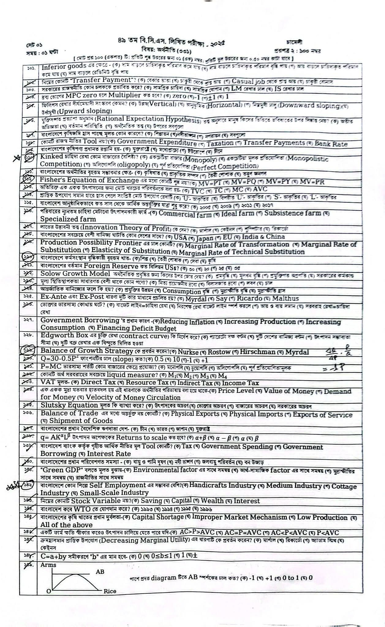 ৪৯তম বিসিএস লিখিত অর্থনীতি পরীক্ষার প্রশ্ন । 49th Special BCS Economics Exam Question
