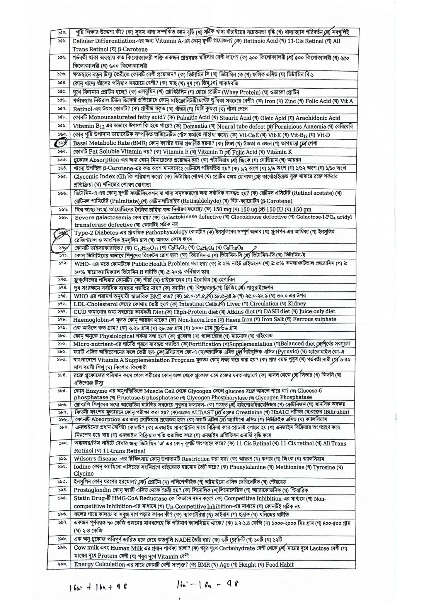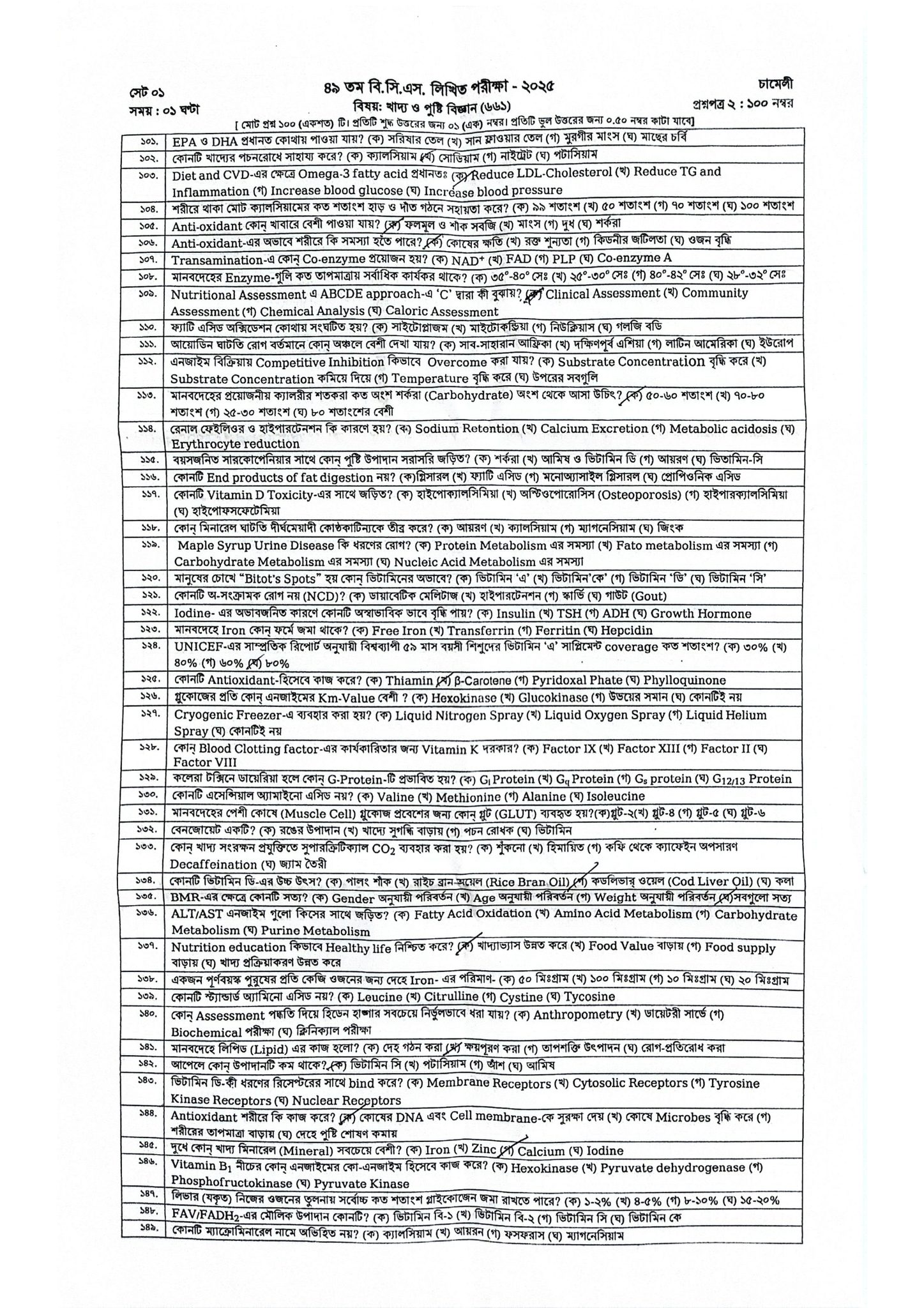 ৪৯তম বিসিএস লিখিত খাদ্য ও পুষ্টি বিজ্ঞান পরীক্ষার প্রশ্ন । 49th Special BCS Food Science and Nutrition Exam Question