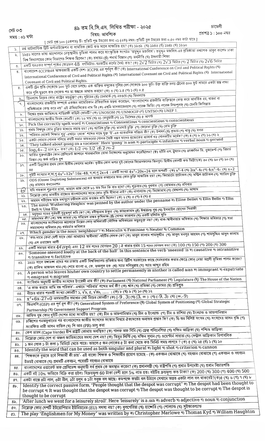 ৪৯তম বিসিএস লিখিত পরীক্ষার প্রশ্ন- জেনারেল পার্ট । 49th Special BCS Exam Question- General Part