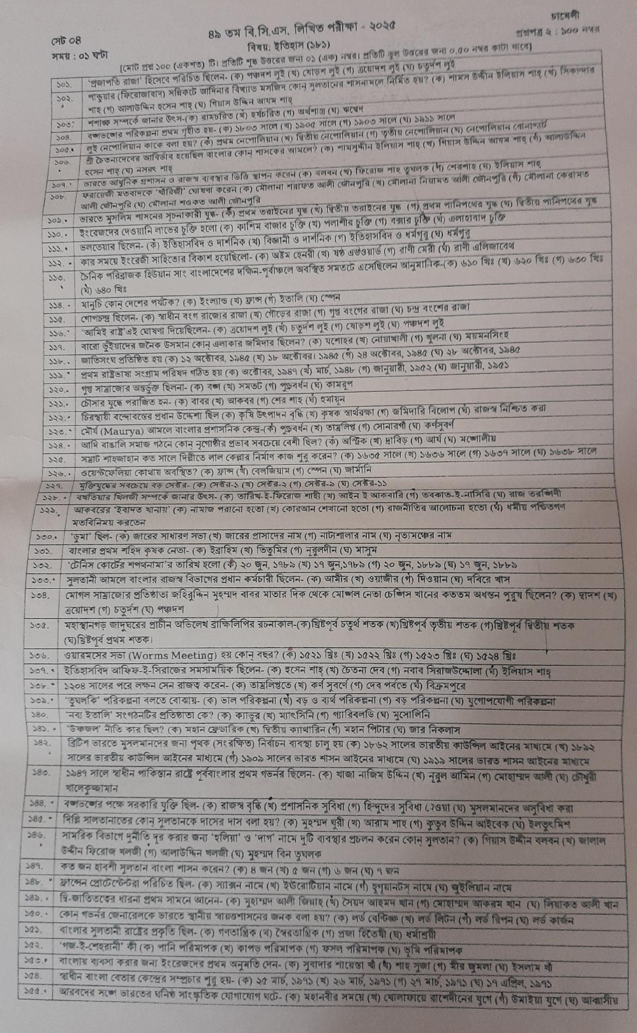 ৪৯তম বিসিএস লিখিত ইতিহাস পরীক্ষার প্রশ্ন । 49th Special BCS History Exam Question