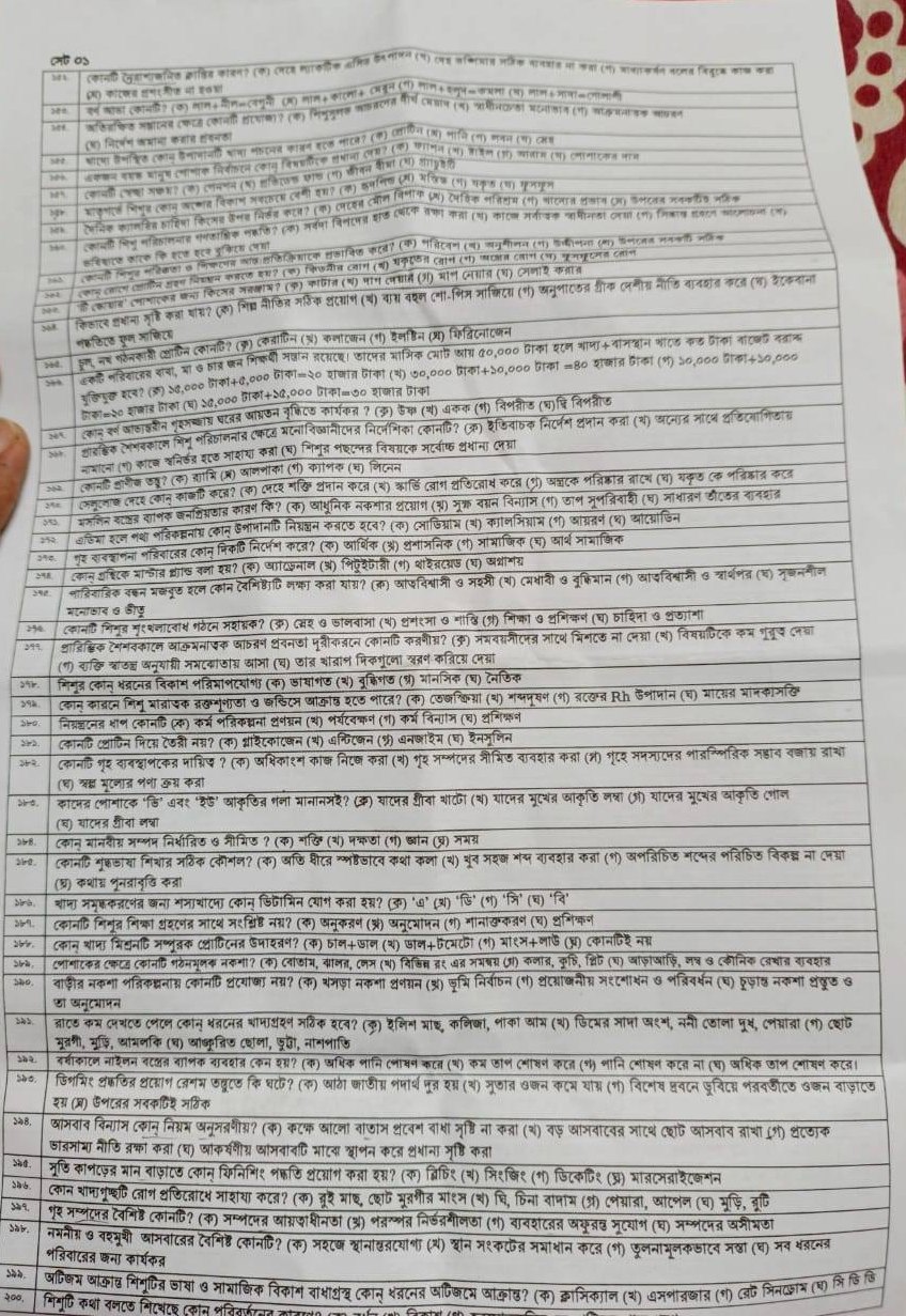 ৪৯তম বিসিএস লিখিত গার্হস্থ্য অর্থনীতি পরীক্ষার প্রশ্ন । 49th Special BCS Home Economics Exam Question