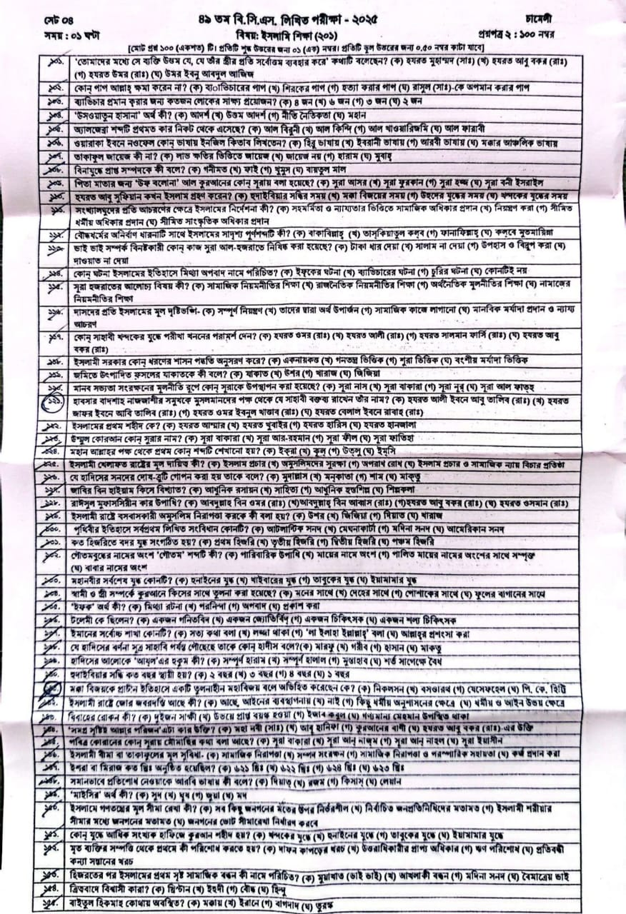 ৪৯তম বিসিএস লিখিত ইসলামি শিক্ষা পরীক্ষার প্রশ্ন । 49th Special BCS Islamic Studies Exam Question