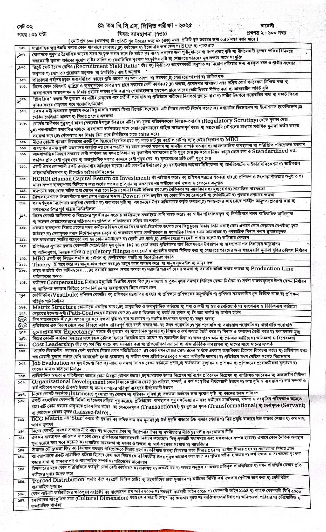 ৪৯তম বিসিএস লিখিত ব্যবস্থাপনা পরীক্ষার প্রশ্ন । 49th Special BCS Management Exam Question