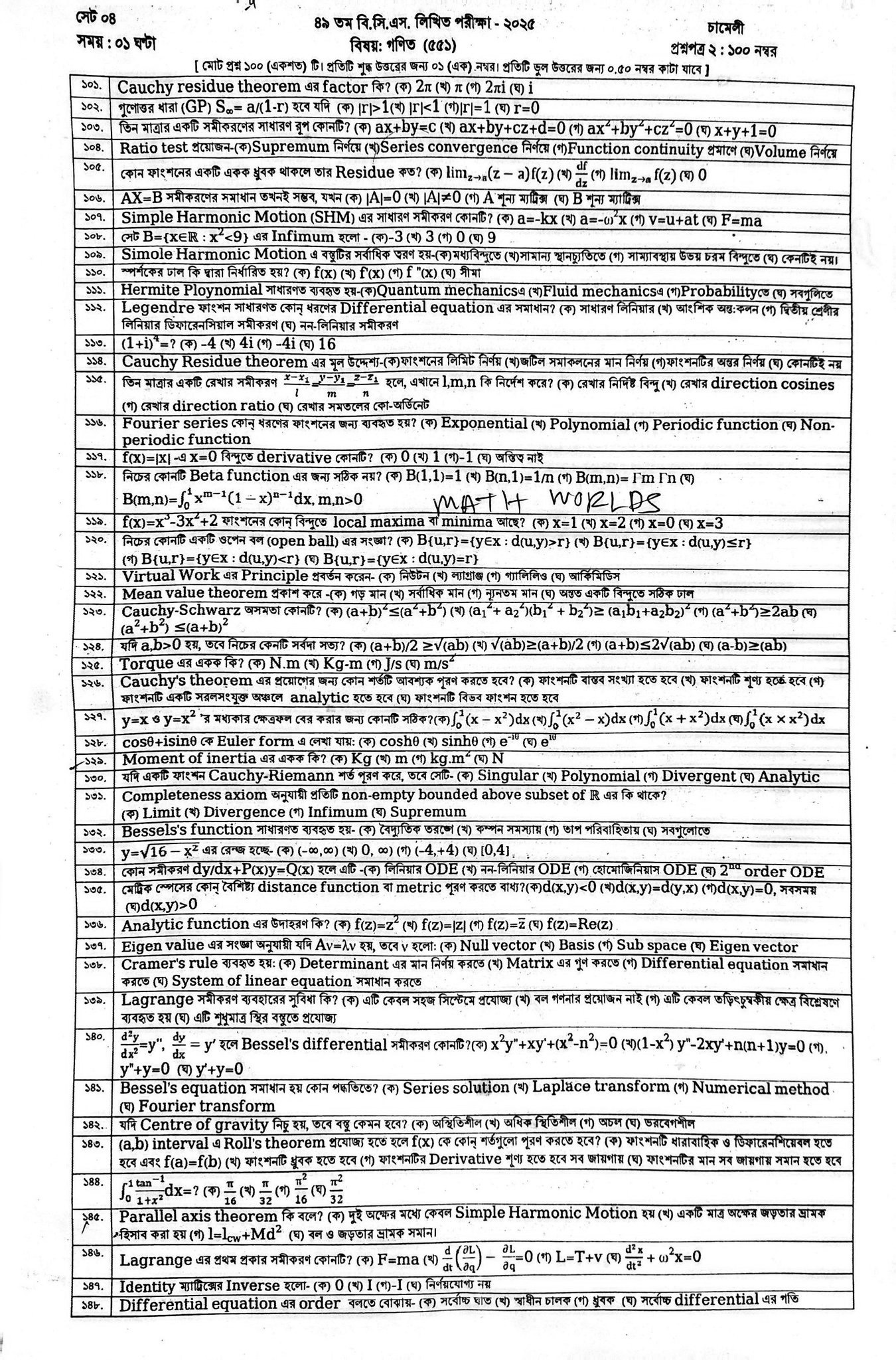 ৪৯তম বিসিএস লিখিত গণিত পরীক্ষার প্রশ্ন । 49th Special BCS Math Exam Question