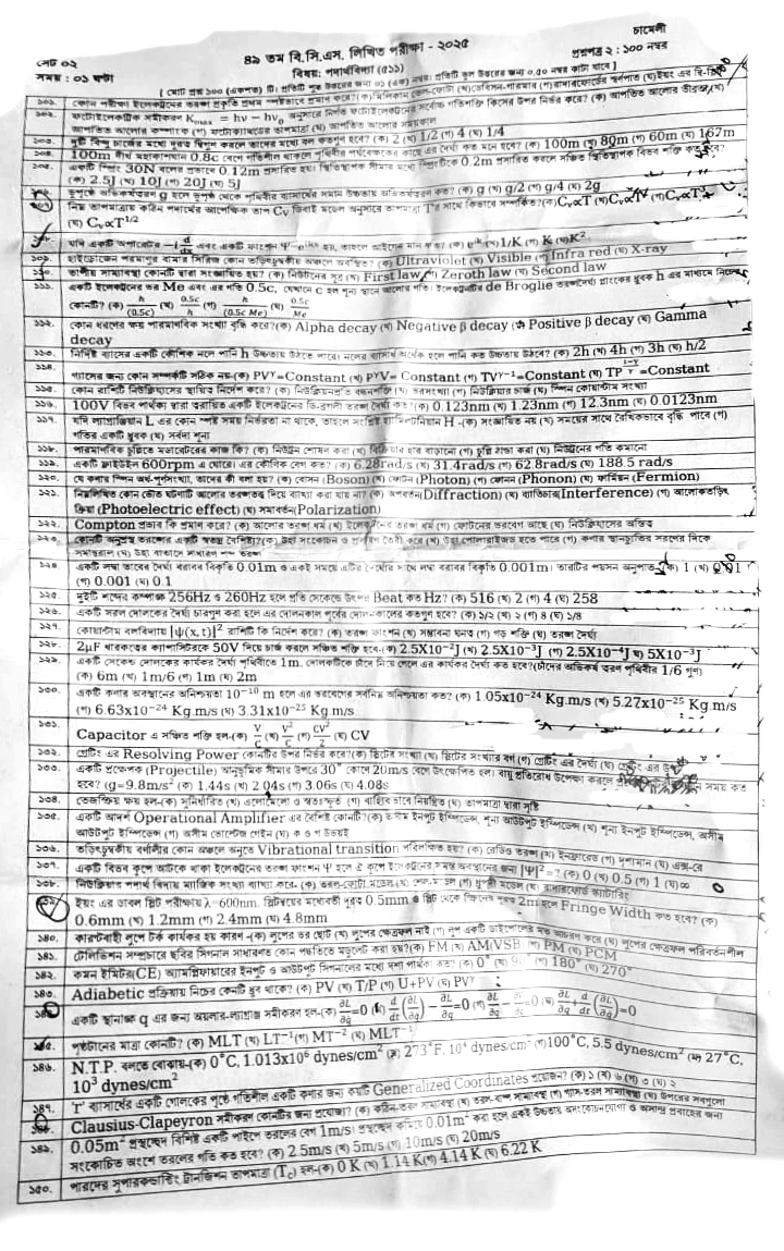 ৪৯তম বিসিএস লিখিত পদার্থবিদ্যা পরীক্ষার প্রশ্ন । 49th Special BCS Physics Exam Question