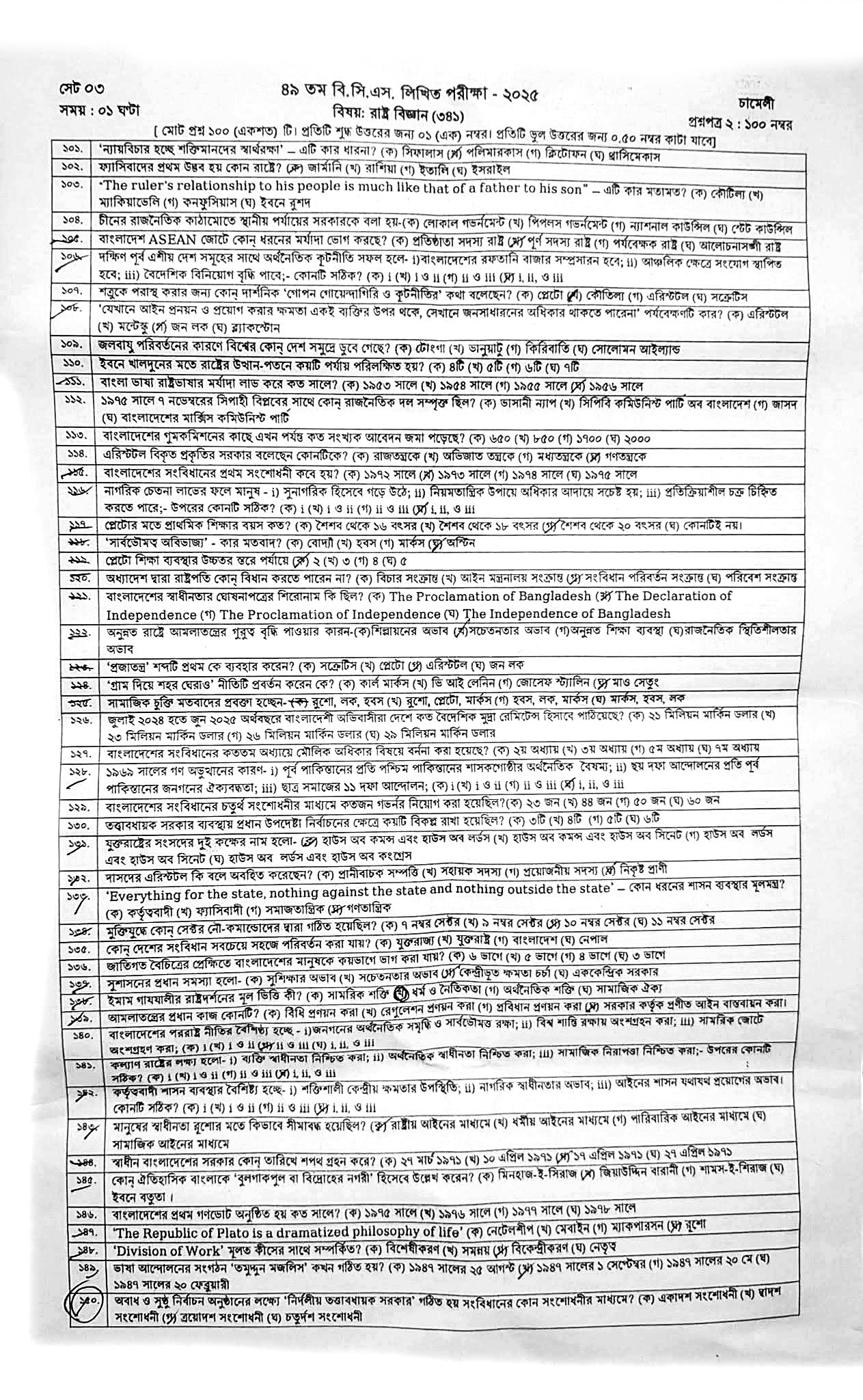 ৪৯তম বিসিএস লিখিত রাষ্ট্রবিজ্ঞান পরীক্ষার প্রশ্ন । 49th Special BCS Political Science Exam Question