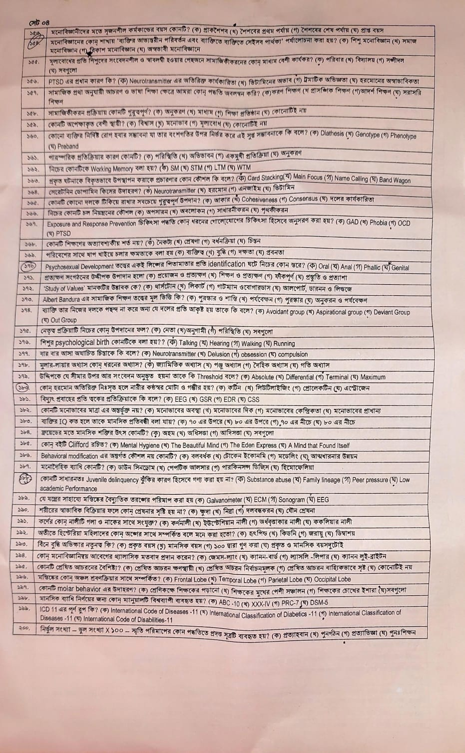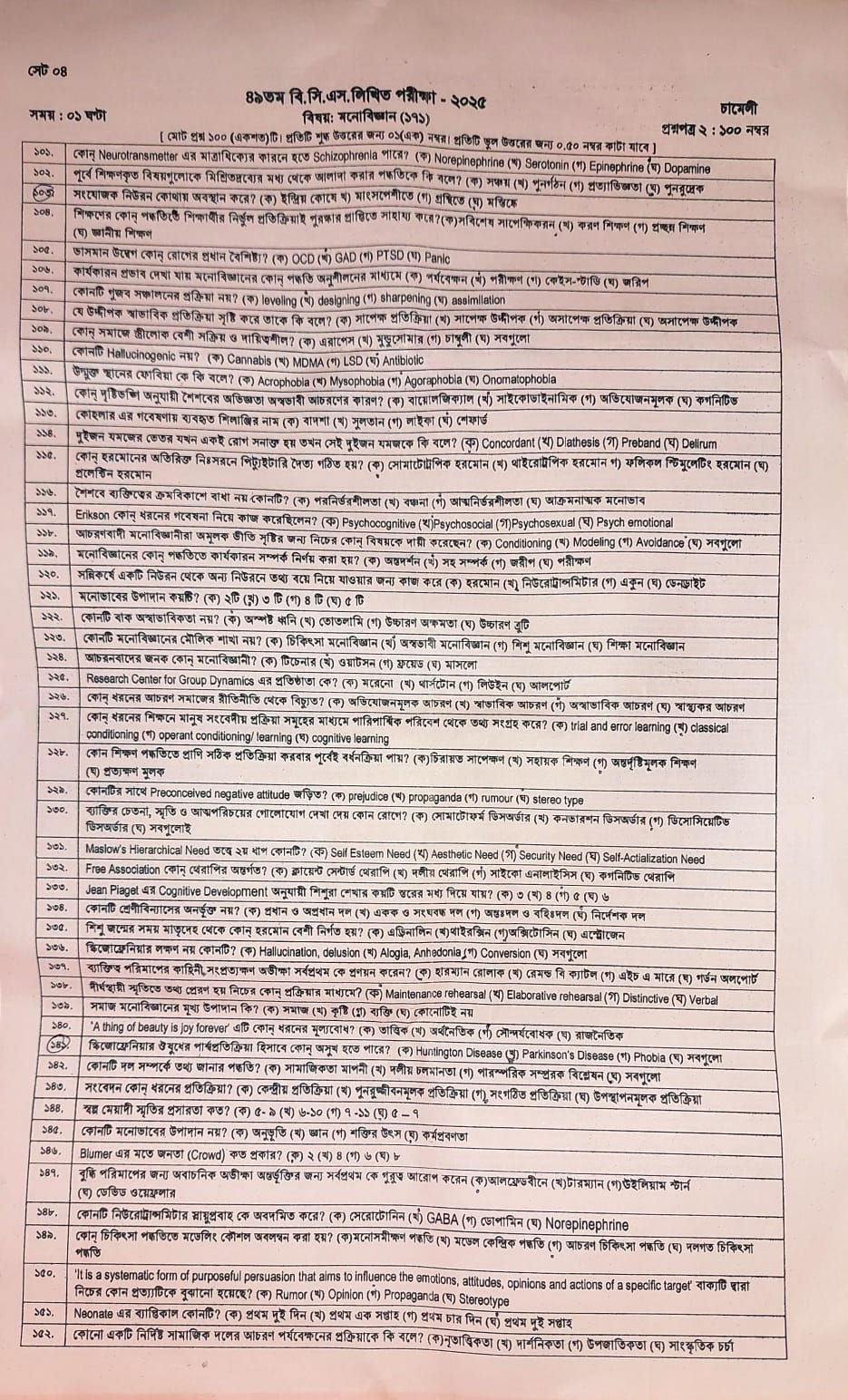৪৯তম বিসিএস লিখিত মনোবিজ্ঞান পরীক্ষার প্রশ্ন । 49th Special BCS Psychology Exam Question