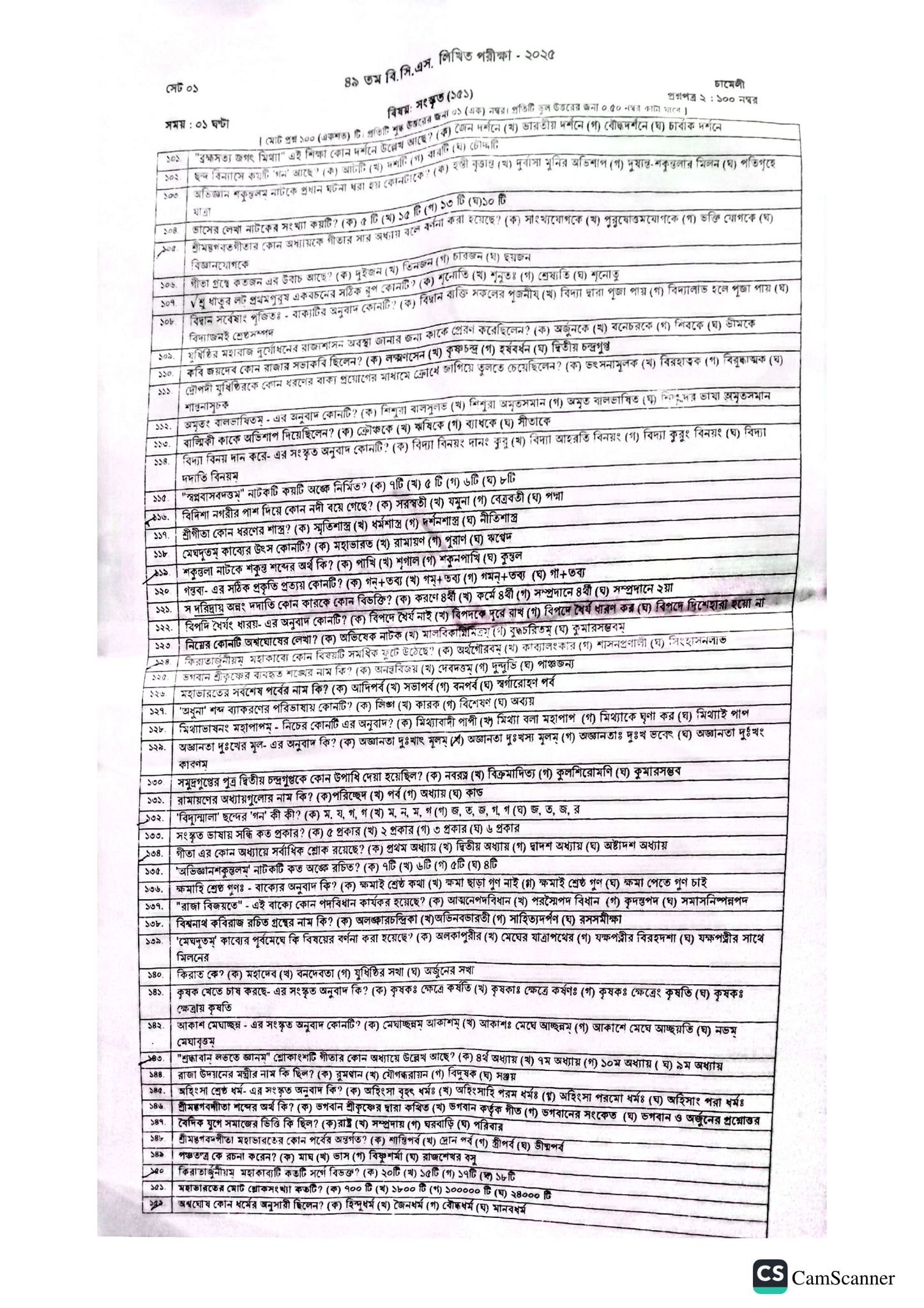 ৪৯তম বিসিএস লিখিত সংস্কৃত পরীক্ষার প্রশ্ন । 49th Special BCS Sanskrit Exam Question