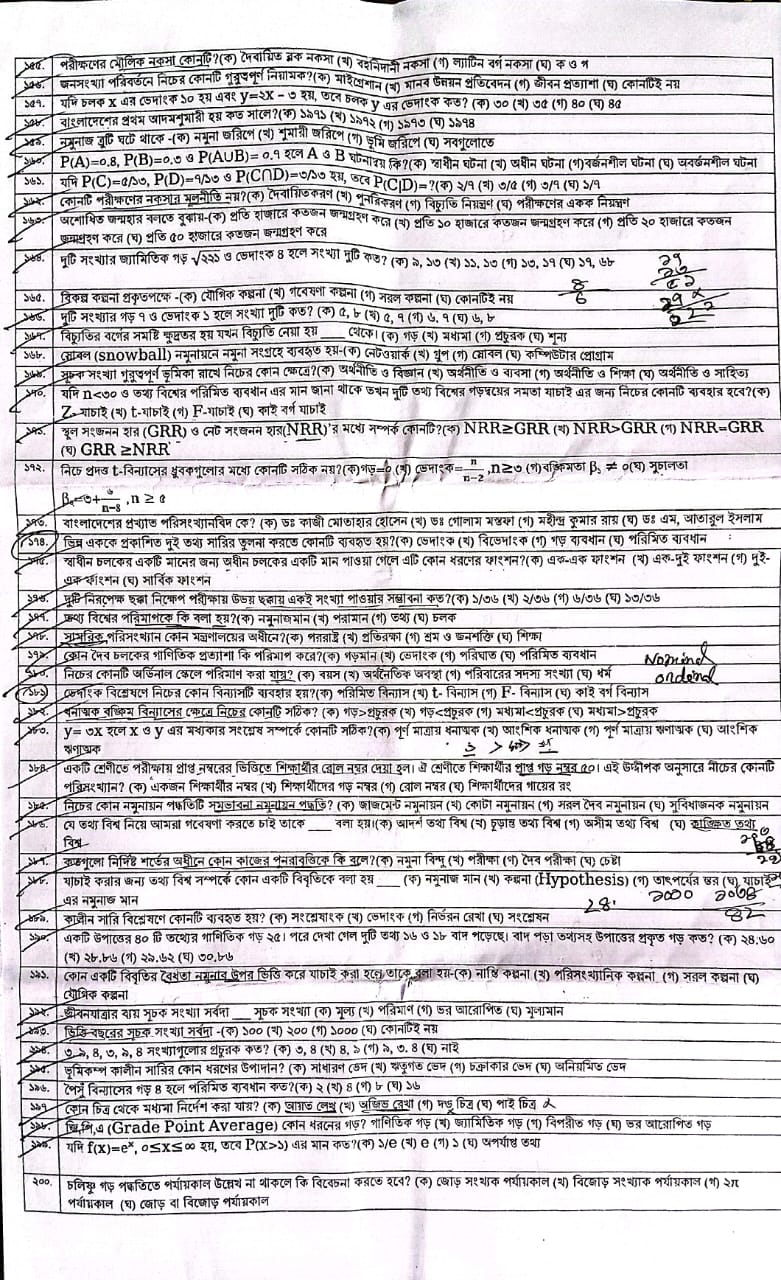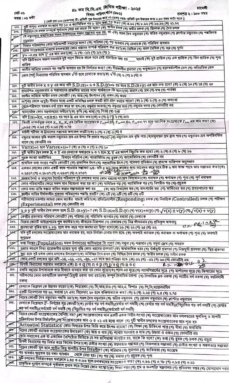 ৪৯তম বিসিএস লিখিত পরিসংখ্যান পরীক্ষার প্রশ্ন । 49th Special BCS
