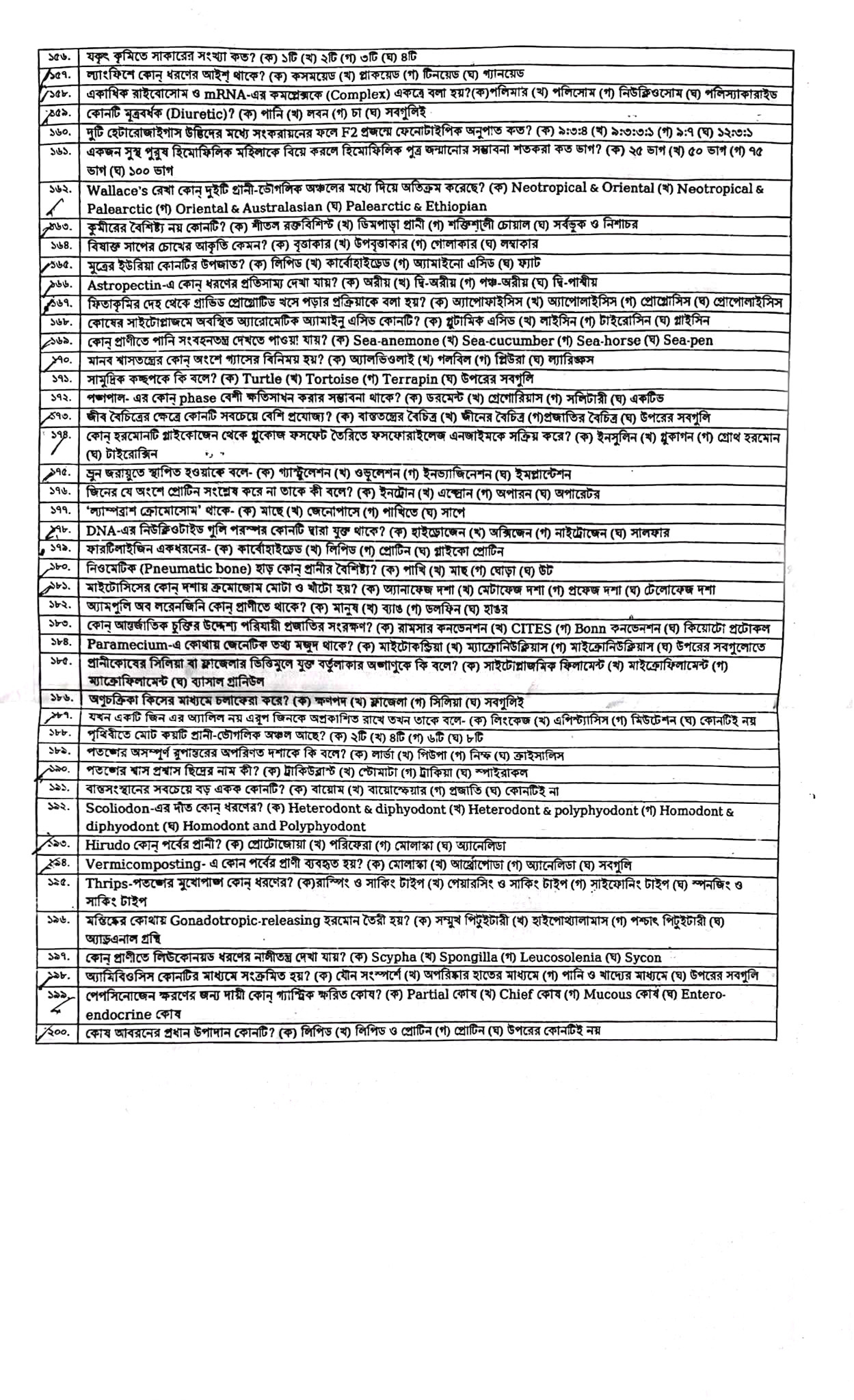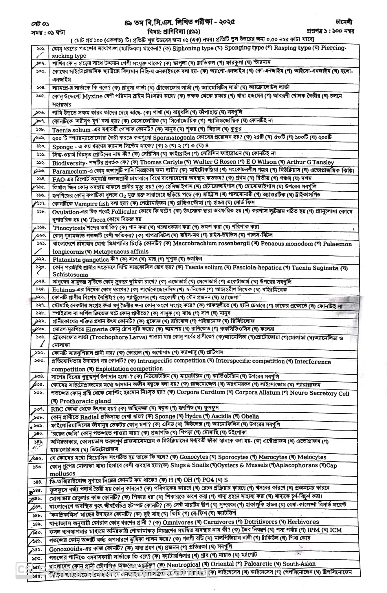 ৪৯তম বিসিএস লিখিত প্রাণীবিদ্যা পরীক্ষার প্রশ্ন । 49th Special BCS Zoology Exam Question