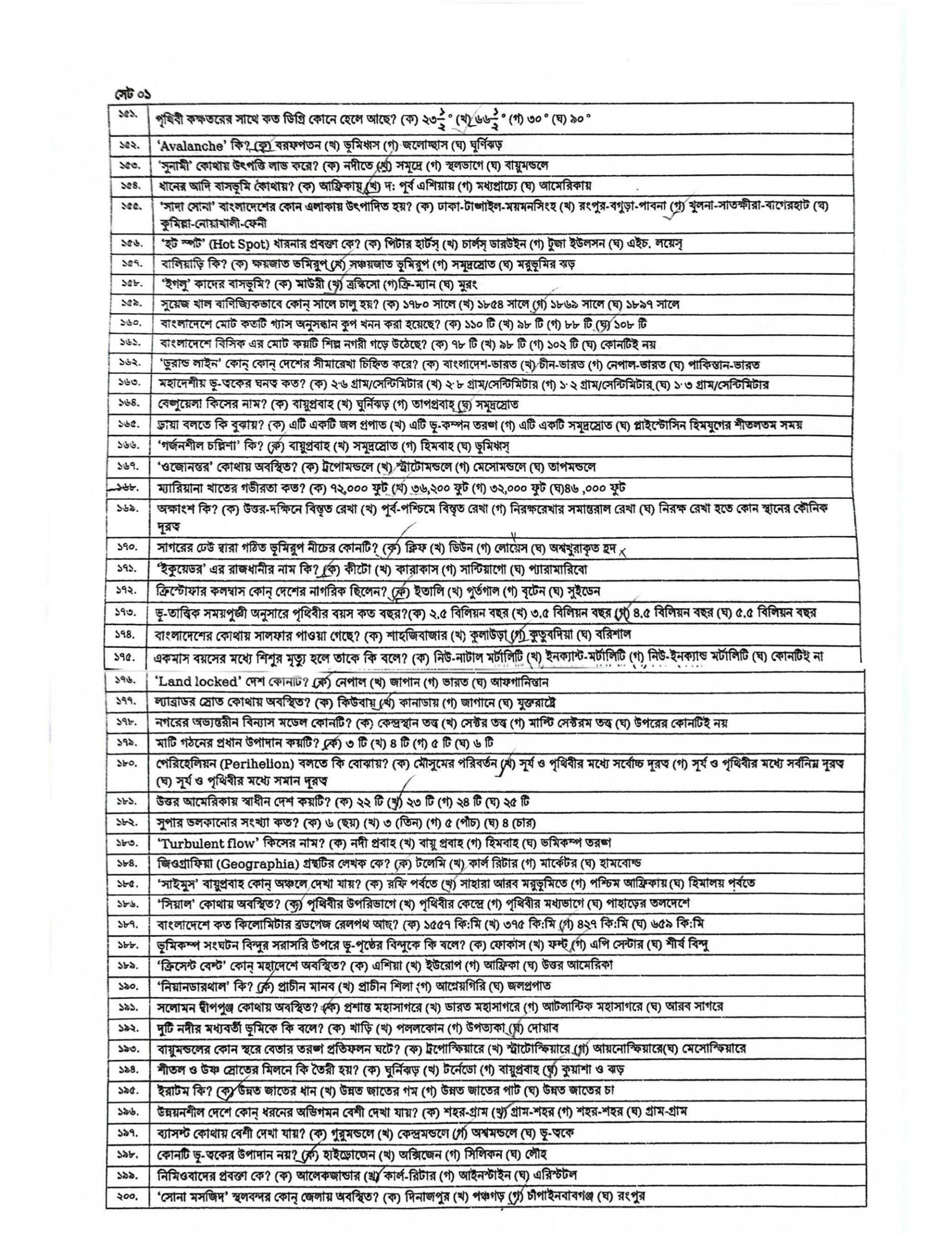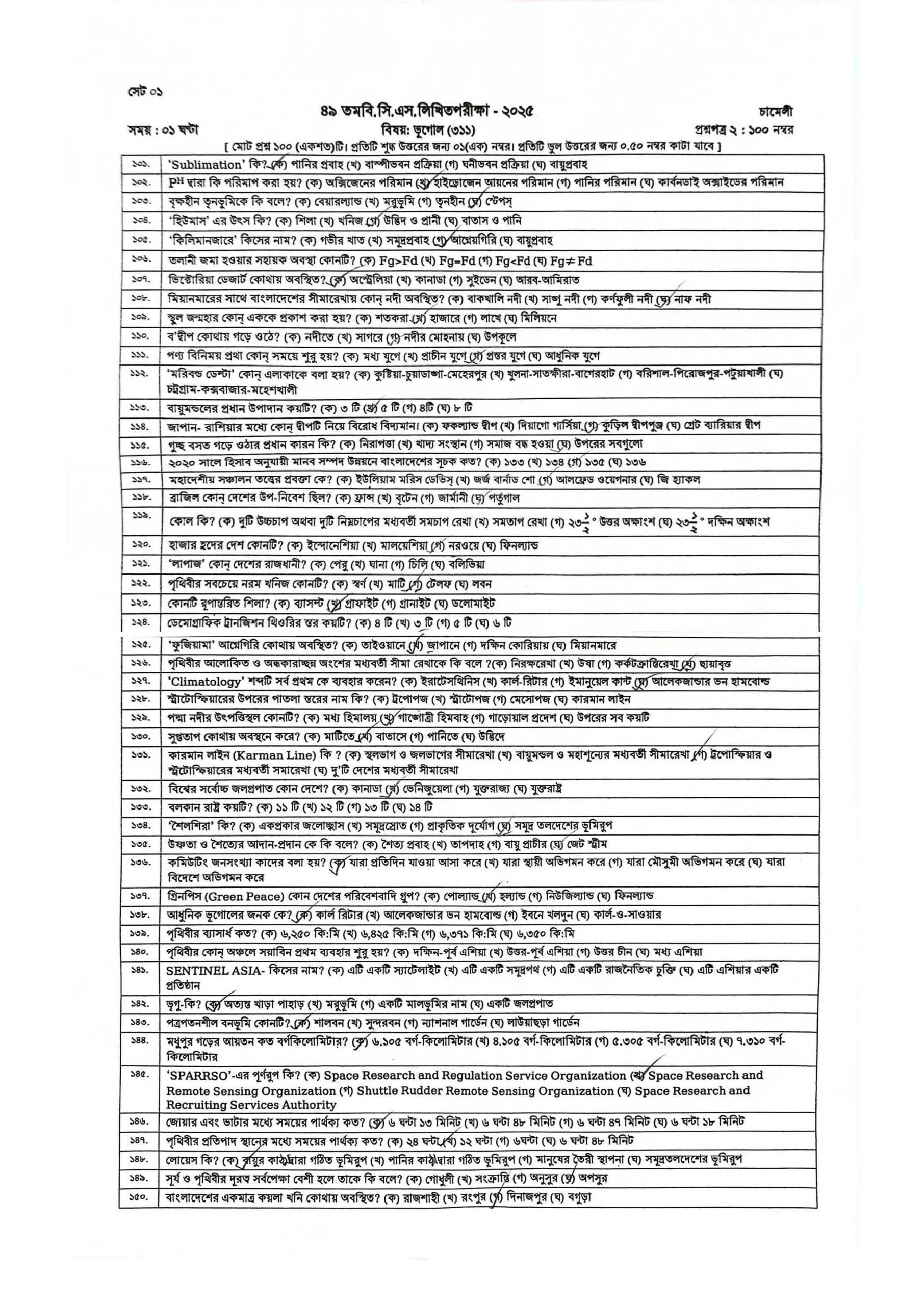 ৪৯তম বিসিএস লিখিত ভূগোল পরীক্ষার প্রশ্ন । 49th Special BCS Geography Exam Question
