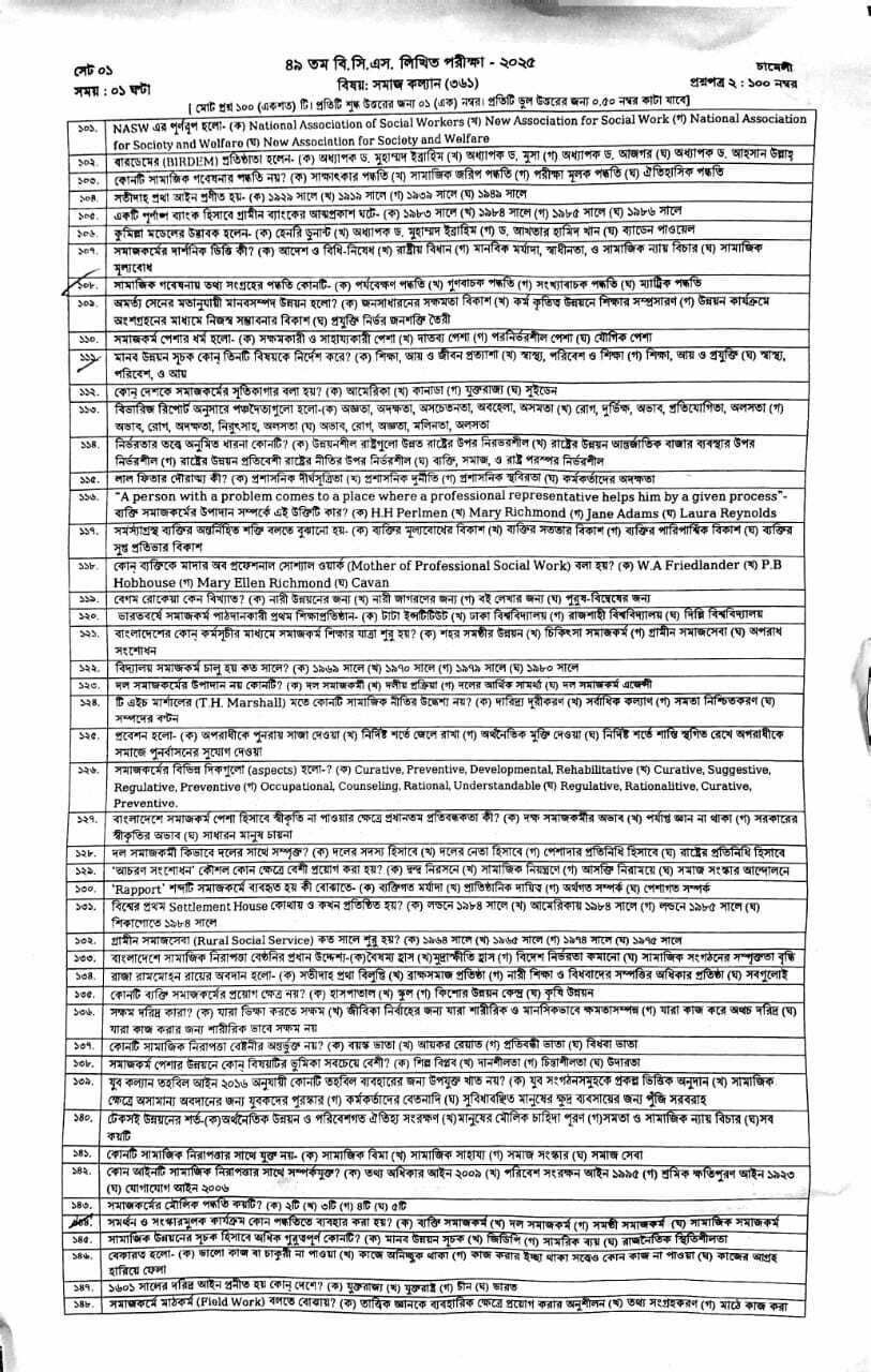 ৪৯তম বিসিএস লিখিত সমাজ কল্যান পরীক্ষার প্রশ্ন । 49th Special BCS Social Work Exam Question