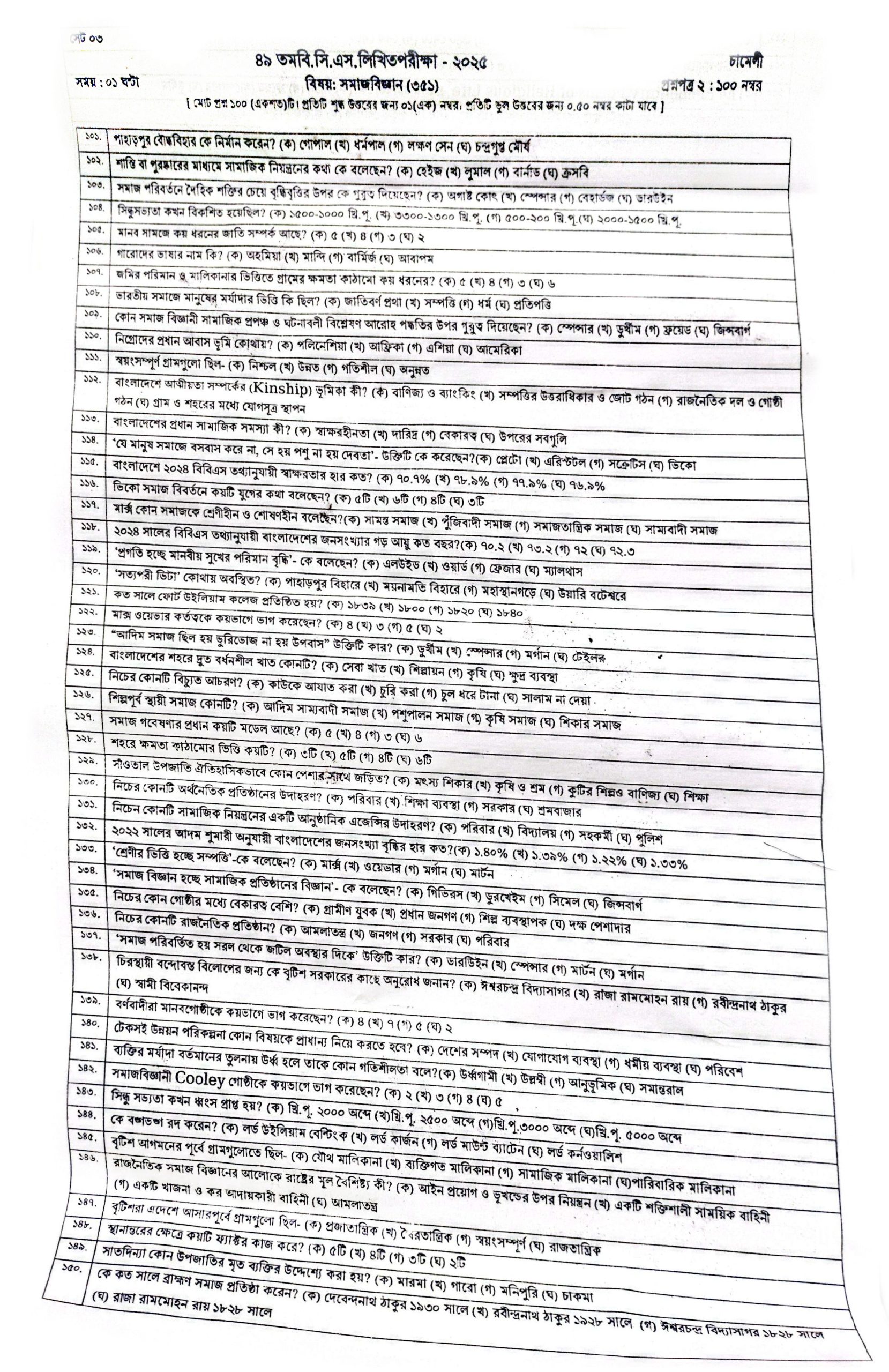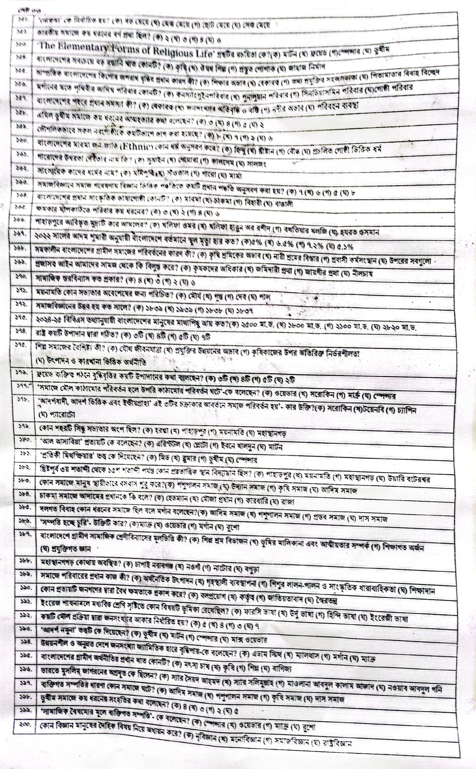 ৪৯তম বিসিএস লিখিত সমাজবিজ্ঞান পরীক্ষার প্রশ্ন । 49th Special BCS Sociology Exam Question