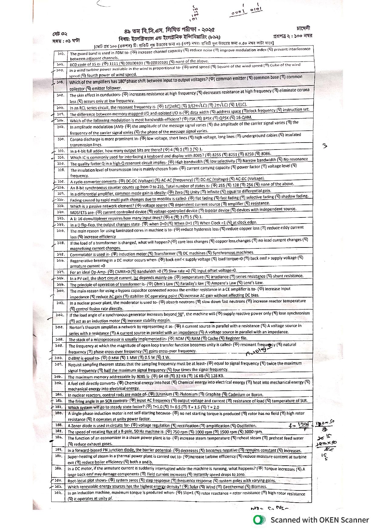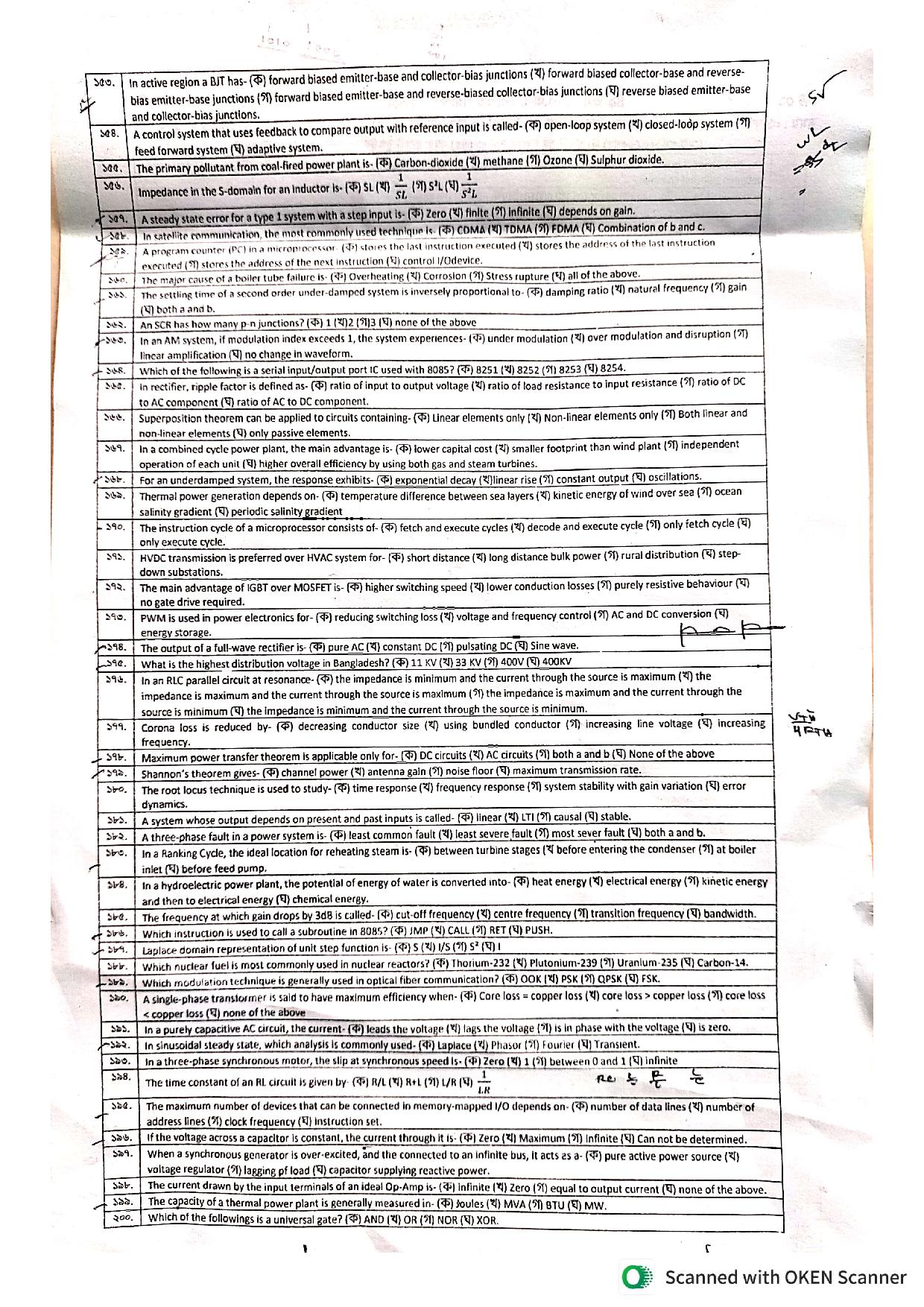৪৯তম বিসিএস লিখিত ইলেক্ট্রিক্যাল এন্ড ইলেক্ট্রনিক ইঞ্জিনিয়ারিং পরীক্ষার প্রশ্ন । 49th Special BCS EEE Exam Question