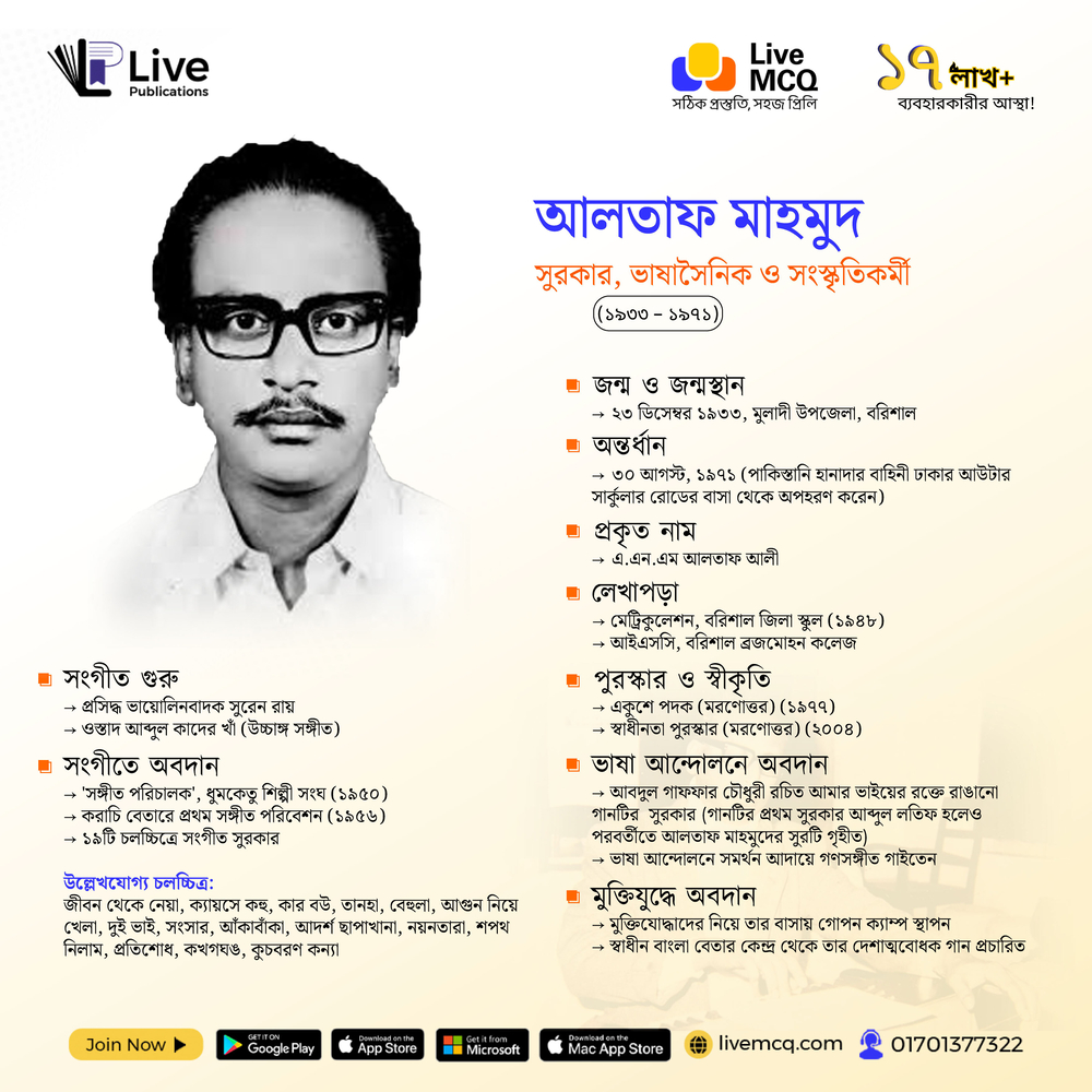 আলতাফ মাহমুদ | সুরকার, ভাষাসৈনিক ও সংস্কৃতিকর্মী | Live MCQ তথ্য সমাহার