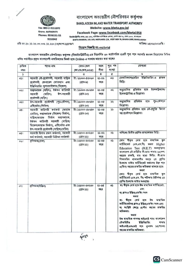 বাংলাদেশ অভ্যন্তরীণ নৌপরিবহন কর্তৃপক্ষ নিয়োগ বিজ্ঞপ্তি দেখুন
