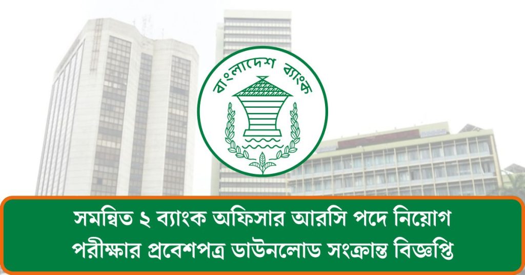 সমন্বিত ২ ব্যাংক অফিসার আরসি পদে নিয়োগ পরীক্ষার প্রবেশপত্র ডাউনলোড সংক্রান্ত বিজ্ঞপ্তি