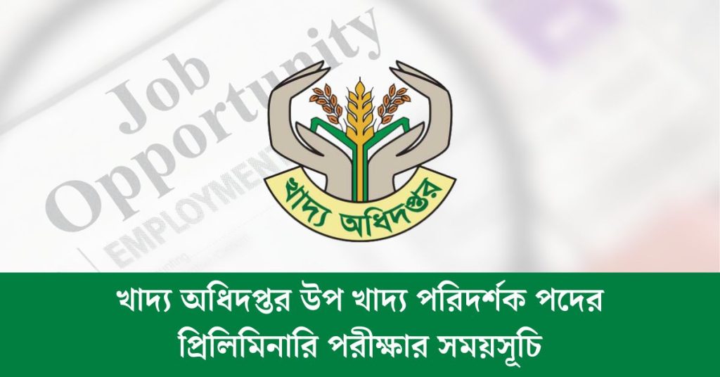 খাদ্য অধিদপ্তর উপ খাদ্য পরিদর্শক পদের প্রিলিমিনারি পরীক্ষার সময়সূচি