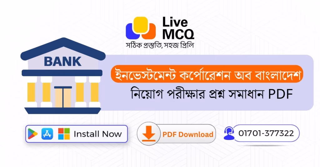 ইনভেস্টমেন্ট কর্পোরেশন অব বাংলাদেশ নিয়োগ পরীক্ষার প্রশ্ন সমাধান PDF