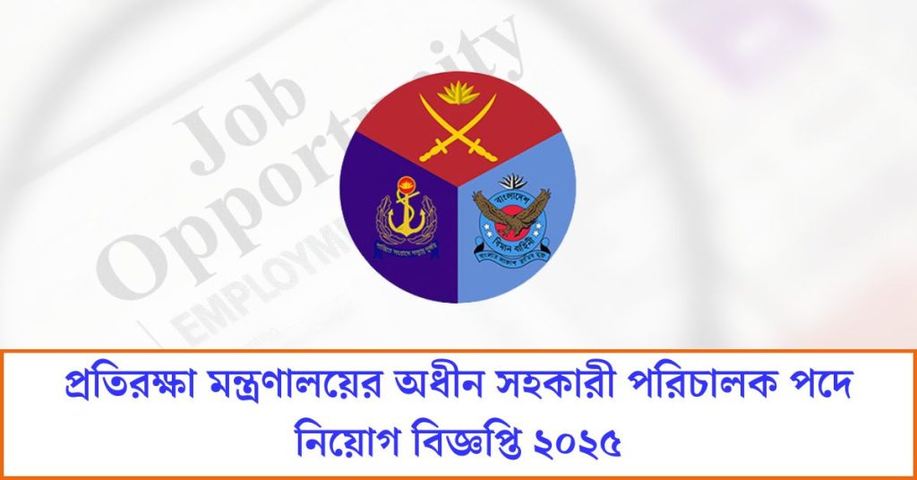 প্রতিরক্ষা মন্ত্রণালয়ের অধীন সহকারী পরিচালক পদে নিয়োগ বিজ্ঞপ্তি