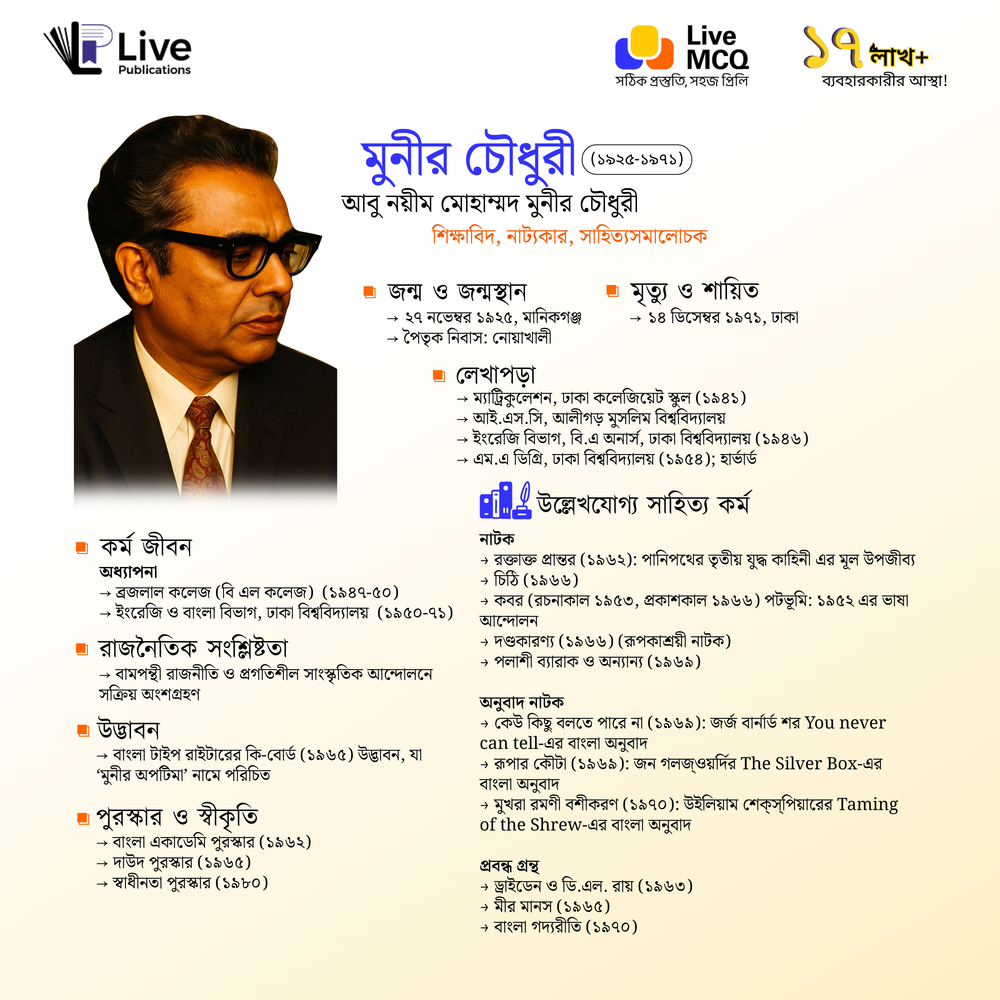 মুনীর চৌধুরী | শিক্ষাবিদ, নাট্যকার এবং সাহিত্যসমালোচক | Live MCQ তথ্য সমাহার